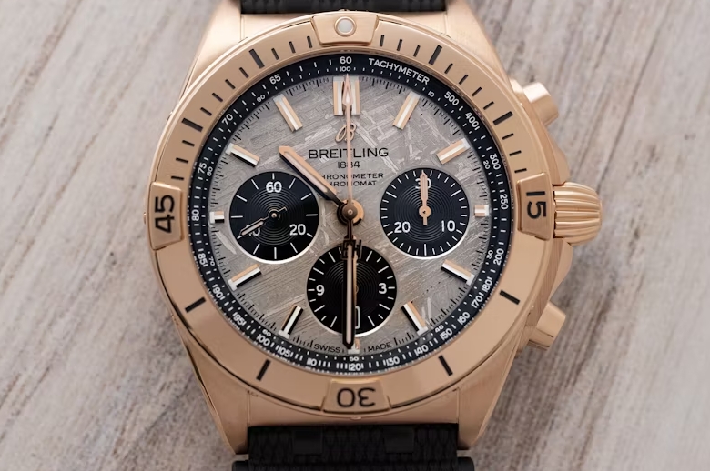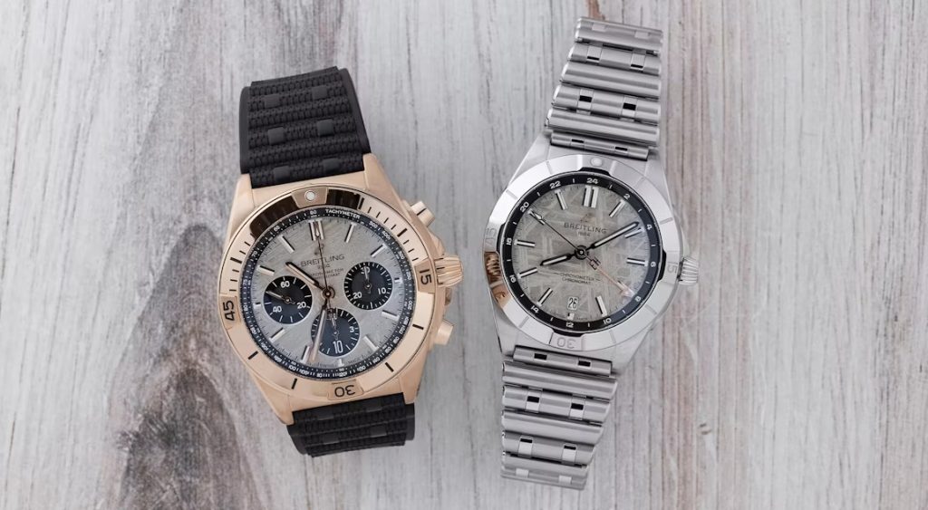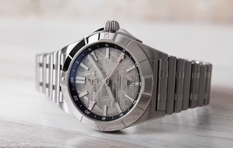 Now I must disclose that I’m a Manchester City supporter, and as such, it was predestined for me, as a Blue, to review this replica Breitling watches for sale. However, allegiances aside, I found myself really liking it. We were only able to see the 40mm steel fake Breilting watches for men and the 42mm gold version, and for me, the 40mm really stood out. What’s particularly notable is how Breitling has paired an exotic meteorite dial—typically reserved for precious metals—with a stainless steel case, making this premium cosmic material more accessible while maintaining the watch’s exclusivity. Putting aside my small wrist size, the 40mm proportions felt just right, especially with the rouleaux bracelet.